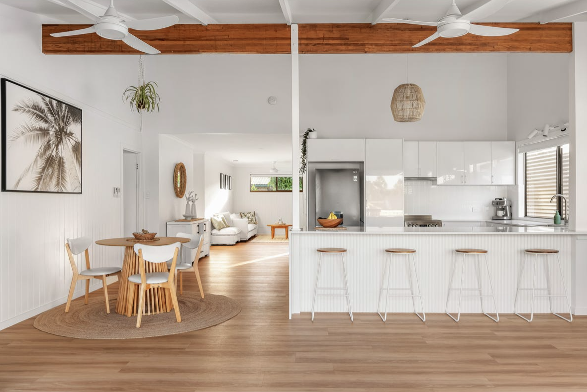 There is something truly special about life at the base of Mount Coolum — where the mountain rises gracefully above the treetops, coastal breezes drift through the afternoons, and everyday life moves to a relaxed, beachside rhythm. At 46 Lumeah Drive, this feeling is captured beautifully. Facing north-east and rich in classic Queensland charm, the home has been thoughtfully renovated to blend timeless character with modern refinement.